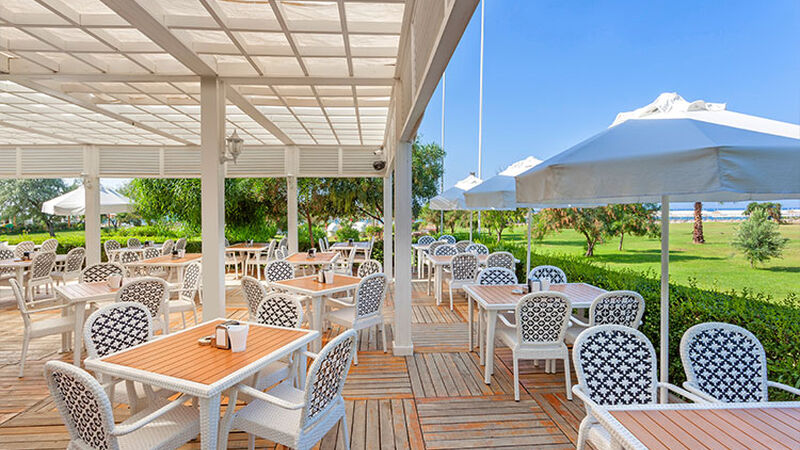 Her şey dahil hizmeti sunulmaktadır. Misafirler için kahvaltı ,geç uyanan misafirler için de geç Kahvaltı, öğle yemeği, aperatifler, kahve ve kek, akşam yemeği ve gece yarısı snack mevcuttur. Kahvaltı, öğle yemeği, akşam yemeği, kahve ve kek açık büfe servisi verilir. Tatil süresi boyunca, Ala Carte Restorantları hizmet bedeli karşılığında rezervasyona tabi olarak hizmete sunulmuştur. Masaya yerli alkollü ve alkolsüz içecekler siz değerli misafirlerimize servis edilecektir. Mini barda soda ve su sunulur. Oda servisi ücretlidir.
